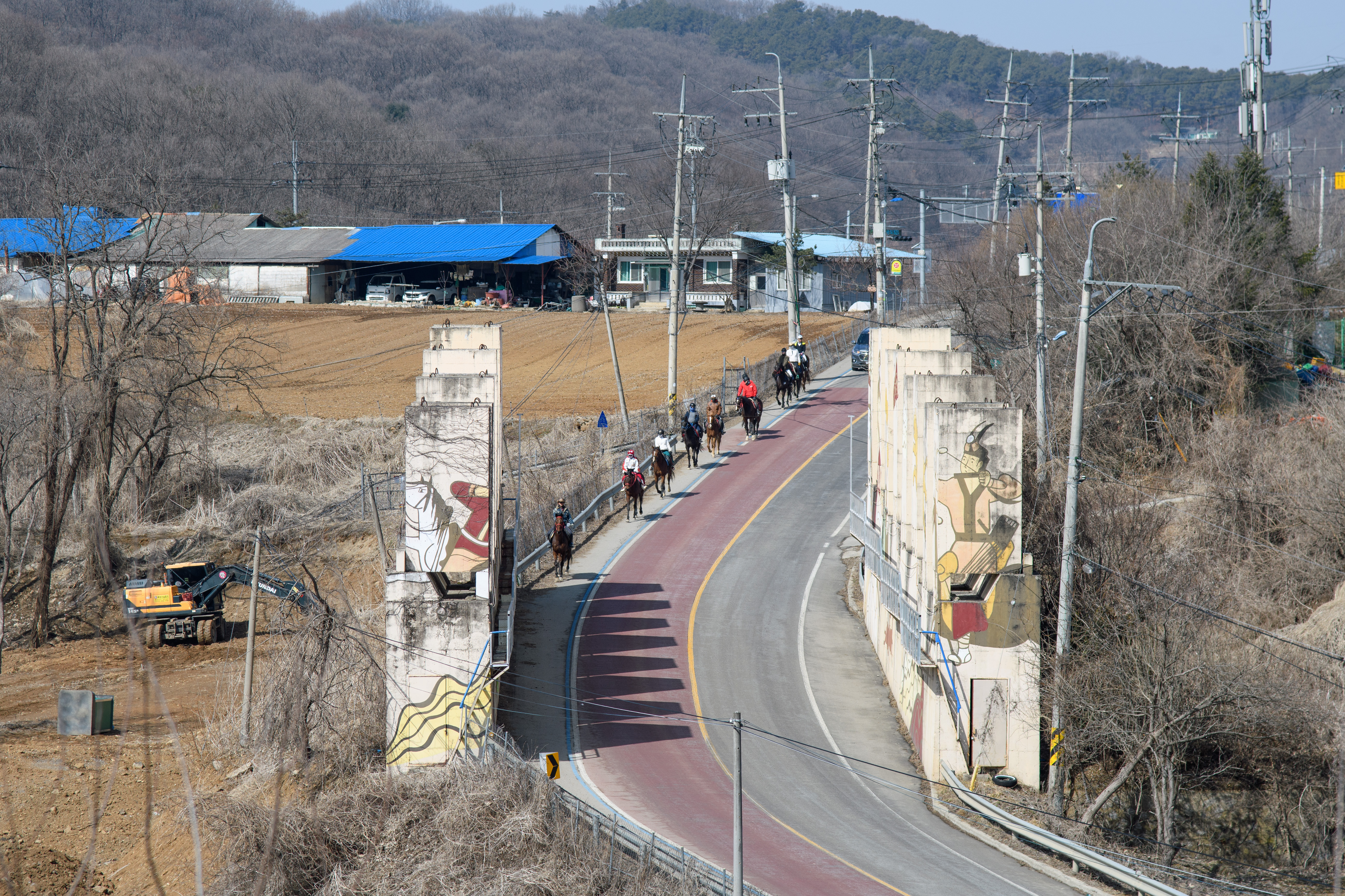 저멀리서 탱크저지선을 지나며 가까이오는 말들과