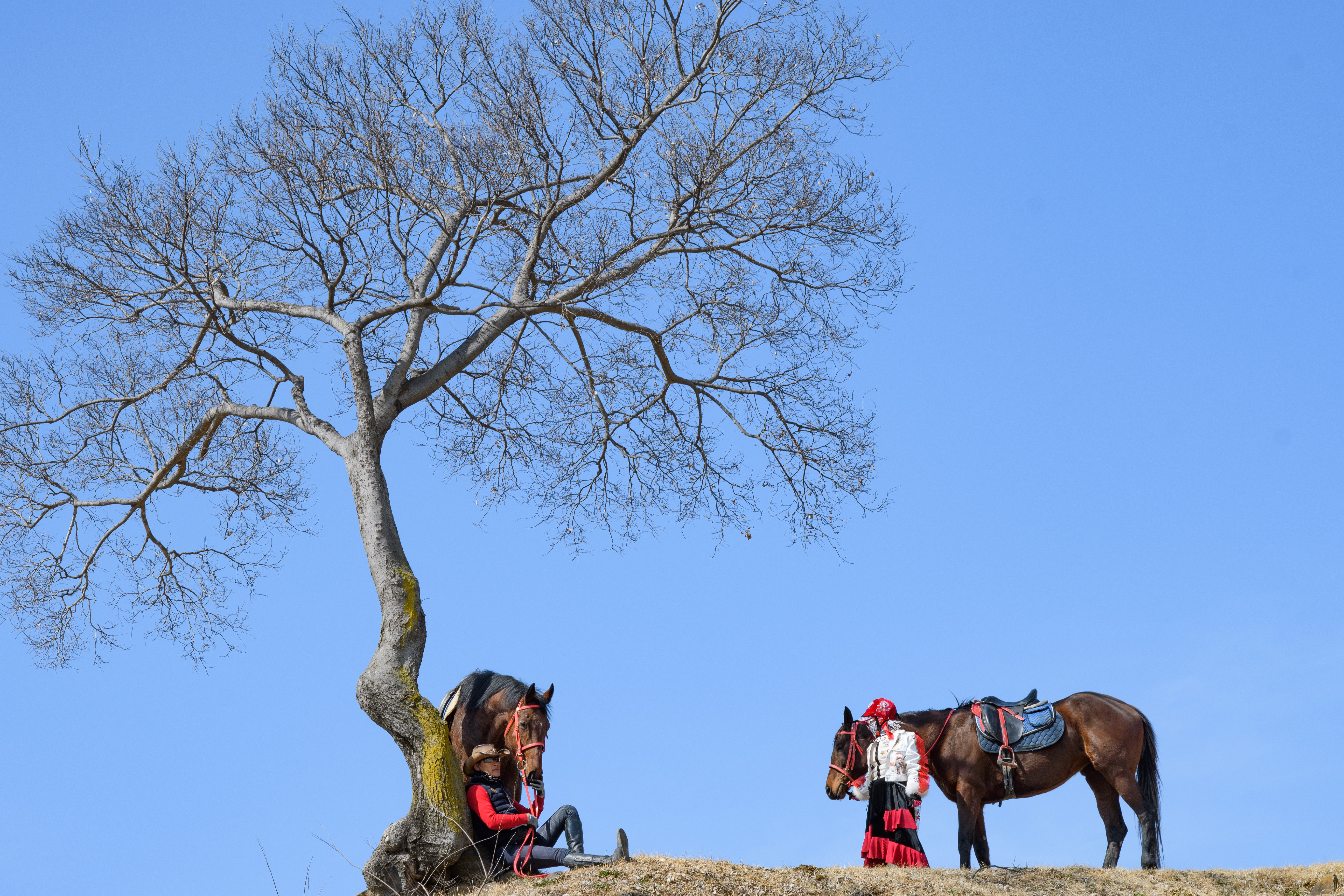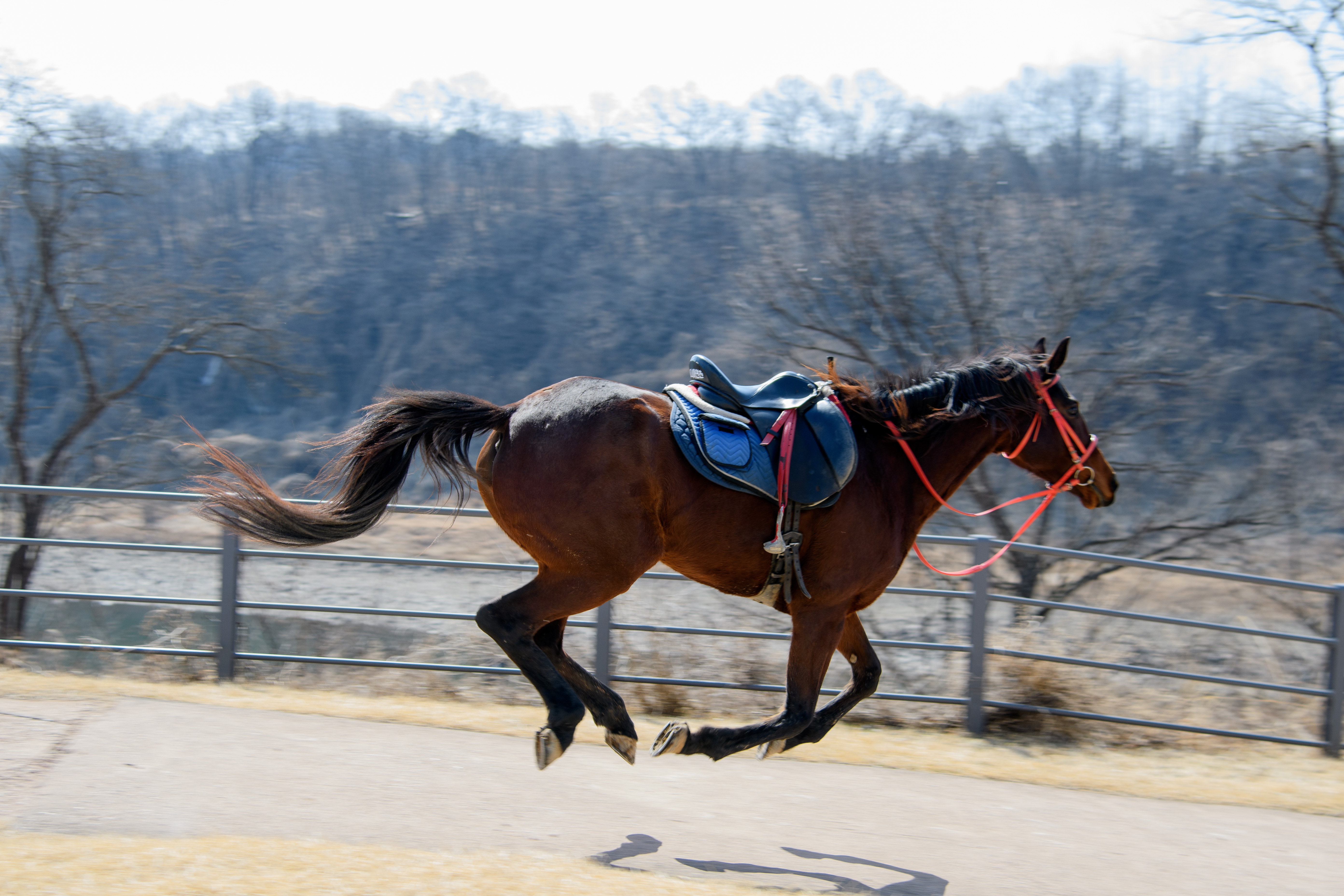 말들이 고삐를 놓아줘도 훈련이 잘 된 탓인지